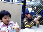 晩御飯後、帽子を被り外へお出掛け。 夜中に帽子? その理由は? これは実は変装・・・。バレナイヨウニ。 何にバレナイようにだろう? さて向かった先は・・・。 mmのバイト先!コンビニ!キャー!! バレナイように、食後のデザート”ソフトクリーム”を買うぞ! 入店!(あ、レジにmm!でも変装してるから大丈夫!!) mm「いらっしゃいま!・・・いらっしゃいませ!」 入店0.5秒でバレマシタ。 そして念願の白桃ソフト。 そしてmmが気になってしょうがないhoma。 壁の貼り紙のとおり怪しい・・・。 バイトガンバレmm!