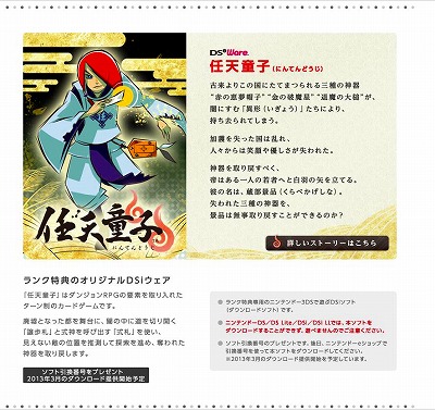 club 任天堂から、プラチナ会員向けの景品案内メールが来ました! 昨日、丁度まだかなぁと思ってた矢先だったので、ちょいビックリ。 今回は、4アイテムから2アイテムを選択できるようで。 うーん。 やっぱりコレかなぁ。 DSiウェア。(3DSしか対応してませんが) 任天童子。面白いのかな スケルトントランプ。チョットよさげ。 任天童子とカレンダーはゴールド会員でも選択可能。 来年の2~3月が楽しみデス。