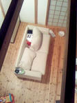その後、「怖い!」と2Fに逃げてきたが、気になるようで2人ともkodomoだけでリビングへ戻る。