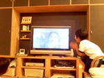 TVのチャンネルをPM7:00放映の”学校の怪談2”にあわせ、kodomo達だけをリビングに残してみた。