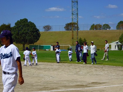 9/23はhomaの野球の試合がありました。 東刈谷教室の第二試合目となります。 今日は1番ショート。 なぜこんな好評価を受けているのかワカラナイ?くらい素晴らしい打順&守備デス。 きっと、 コーチの「1番打ちたい人!」 homaの即「ハイッ!!」返事。 「じゃあhomaが一番バッターね。」 って言う感じで決まったんじゃないかなぁ。 まぁ経緯は良いとして。。。 今回生涯初安打を記録! ボテボテの三ゴロでしたが、全力疾走で記念すべき初ヒットとなりマシタ。 親も勿論ウレシイ♪ 試合は0-11で完敗。。。初戦は確か2-19。 なかなか勝てない。 homaも守備では何度もポロ。 今後の課題がはっきりしてきたかな。 試合後のお楽しみ! 生き残りノック!! 前回仕事で参加できず、今回の開催を心待ちにしてました。 父兄も参加OKなのデス! あ、ppだ。 試合では殆んど取れてなかったhomaですが、1回目はキャッチ成功。 なんだよ取れるじゃん。。。 さて優勝目指したppは・・・ ラスト4名まで残りマシタが、あえなく脱落。。。 でもまぁ、久々のノック気持ちよかった♪ 次こそは。