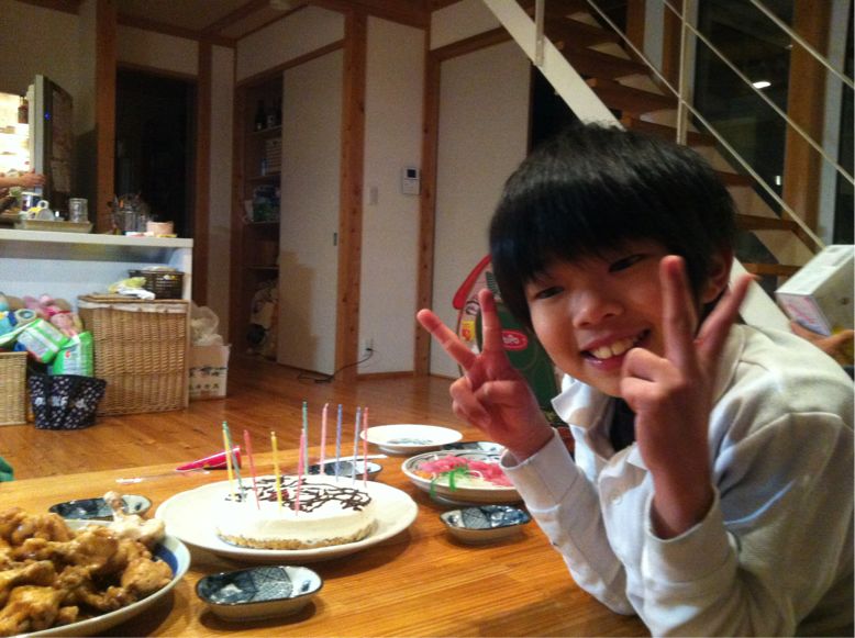 もう10歳です。誕生日プレゼントは前借りでwiiUだったので、この日はなし。誕生日ケーキは、大好きなチーズケーキ。急遽頼まれて書いたレックウザ。チョコペンは大嫌い。大きくナッタモノダ。。。先日の肺炎騒ぎもあり、トレードマーク?の半袖半ズボンは影をひそめます。これからも元気で成長してください。