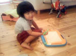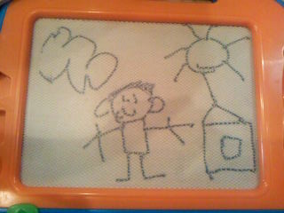 TAKARAのせんせいのような、磁石のお絵かきボード。 以前、某1000円均一で購入。 homaharuが久々に楽しそうに遊んでいるので覗いてみると・・・ homa画伯作。 お。 NHKの教育番組あたりで出てきそうなタッチの絵。 ウマイじゃんというか、可愛いじゃん。 いつのまにか、こんなしっかりした絵が描けるようになったなんて。 そしてharuちんは・・・ haru画伯は・・・。 描画後、瞬間に消す為、画像なし。 これもアートなのか。 ・・・。
