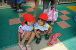 元気に遠足出発! 玄関にて、笑顔のhoma。 今回の遠足は、小学校から1.5kmほどの”フローラルガーデンよさみ” ガンバレよー。 さて、mmがppにもお弁当つくってくれたので・・・ お昼はどこで食べようかな・・・ ・・・やっぱり、”フローラルガーデンよさみ”かしら? ・・・行っちゃいました。 園内でも一年生がお弁当中。 しかし、なかなかhomaを見つけれない・・・。 そんなこんなしていると・・・ 近づいてくる小1生有り。 「ppっぽいなあ。」 はい。ppです。 見つかってしまいました。 楽しそうに遊んでいるのが見れて満足です。