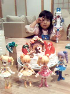 homaとは丁度1週間違いで、haruの誕生日。 3歳♪ 4月から、幼稚園の年少さん。 この日は当然ワガママOK。 着たい服。・・・プリキュアローズ。 着けたいアクセサリー・・・プリキュアローズ。 履きたい靴・・・プリキュア5のサンダル。 プレゼント・・・fresh!プリキュアの人形・・・。 今日はfresh!プリキュアが3人揃った日。 これも何かの縁なのだろう・・・。また数年の付き合いになりそうだ。 haruの為に、家族で誕生日ケーキを作製! スポンジから焼いて~苺のトッピング~、更には飾りつけの”お菓子のお家”も作りました! (mm発案♪) プレゼントと一緒に♪ 皆でガンバッタ甲斐があり、なかなかの出来! ppは生クリームのホイップにも大苦戦・・・。 もっと、元気に大きくなあれ。 可愛いharuちん。