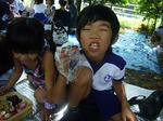 9/25土曜日はhomaの運動会でした。 天気は快晴。 昼ごはんの場所取りも完璧。朝一、木々の下を確保♪ 2年生のダンスは、嵐のMONSTER。 自作のお面でモンスター。 ディグダ? 午前中でハプニングといか・・・失態? クラス対抗リレーの応援をすっぽかしマシタ・・・。 この小学校では徒競走がないので、運動会のメインイベントなのに・・・ プログラムを家に忘れたppのミスです。 「一人抜かしたよ!」 と、嬉しそうに報告してくれたhomaの笑顔に申し訳ない。スマヌ。 さて、昼ごはん。 mm特製モンスターボールおにぎり。(一部) ハイパーボールもありマス。 午後も頑張れ。 一年分の成長を確認できた一日デシタ。 さぁ、来週はharuちんの運動会だ。。。