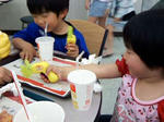 ヤッターマンのシールと、拍手する変なオモチャをget。