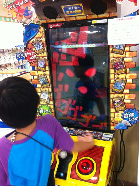 先日より、iPhoneで育てていたオレカバトルのモンスターを、本当にアーケードで使えるのか試してミタ。卵からココまで育て上げた「重竜ベヒモス」読み込むか?モンスター読み込み時に、レバーを下方向に2秒。サブカメラへの切り替えを行い、予めiPhoneでコード表示しておいたモンスターを読み込む。出来ました!(写真は無関係)最強クラスのモンスターが助けてくれマス。コードだけ印刷して持たせれば、iPhoneいらずか。オレカ面白いじゃん。