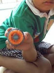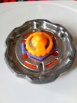 先のサマーカップでの景品、 ”レオーネ クリアオレンジver.”が最近のお気に入り。 自分の力でGETしただけに、やはり思い入れがあるようだ。 相棒! 以前は切り札のベイとか言ってたけど、最近は”相棒”という呼称で呼ぶ。 アニメとかの影響かしら。 homaが改造ベイの「重さを知りたい。」と言うので、久々mmの量りを持ち出す。 いざ、測定。 ★ロックレオーネH145WB+メタルフェイス (当初はクリアのフェイスが気に入っていて、メタルをつけようとはしなかったが・・・) さすがにヘビー!45g! 重っ! 両手に持ち比べてみると、なんか今回のロックレオーネの方が重い。 homaと同意見に感じ、量ってみると・・・ 同じ・・・。全然気のせいデシタ。 で、いざバトルするとイマイチなので、更にhomaの改造が入りました。 表は変わらず。 100トラ+S ★ロックレオーネ100S+メタルフェイス 結構強いではナイカ。 しかも・・・ ☆回転時間:AVE. 3分34秒 を計測。 (homaのMAX回転時間を30秒以上更新。) 暫くは、これが彼の良き相棒となりそうダ。