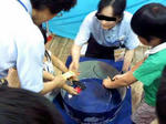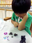 午前中、アピタのベイブレード大会へ参加。 アピタに着くと、オモチャ売り場では既に人混み。 ベーブレード商品も大量に入荷。 昨日買いに行かなかったランブーライトvol.3も有り。 (今日の大会にあわせての陳列っぽい。) (ベイポインターなんかもウジャウジャ残ってる。品薄はやはり解消?) お金もないので、ランブー3を一個のみ購入。 休憩所で早速開梱。 homaが選んだランブー。 さて~。 ナニが出るか!? 出た!クレイアリエス! 新トラック”ED145”とピンク(紫?)のクリアウィールにhomaもついウットリ♪ 珍しいくらいのヒキ! そして大会! 32名参加のトーナメント。事前申し込み。 ルールは・・・一番前にいたけど、よくわからない。 (ppがこんなんだから、強くしてもあげれないのね。) ★一回戦開始。 いきなりhomaの試合! 相手は・・・haruちんくらいの女の子。 え?と思いつつ、持ってるベイを見て2度ビックリ。 紫リブラ。グハッ。 1回目○ 持久勝ち。 2回目○ 相手のシュートミス。 勝った?と思ったら、 3回目。?3回先に勝った方が勝ち?ん? 3回目× homaのシュートミス。 4回目× 持久負け。 あらら。。。 大会の様子。 5回目 リブラぐらつくも、僅差で持久負け×。 ↑戦績書いたけど・・・ なんか、フライングとか後出しとか色々あって、 実際何回戦ってるとか、どれが有効な勝負なのかppには良くわからず。 3歳くらいの女の子に・・・嗚呼・・・実力負け・・・orz。 まあとにもかくにも、2大会目の結果は1回戦負け。。。 リブラってホントに強いノネ。あの女の子も。 homaちん、負けた直後は悔しそうだったけど、 クレイアリエスが当たった事と、参加賞の145トラックが貰えたのがウレシかったよう。 (先の景品、オレンジレオーネはトラック/ボトム無しだったので、トラックが1つ不足してマシタ。) 今後の大会どうしようかなあ。ppは・・・もう満足。