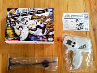 やっぱり買っちゃいマシタよ、02さん。。。(すみません、間違えましたorz...) 開店直前までhomaと悩み、雨もあがっていたので・・・ 開店30秒前に近所のスーパーへ到着。 開店後、早速おもちゃ売り場へ。 アリマシタ。 購入し、開梱! 内容ブツはこんな感じ。 ここで一言。 シールが貼りにくい。子供には無理デス。 もう一言。 ポインター接合部のカバー。浮きスギ。 こういう作りの甘さは嫌いィ。 さて、ランチャーの感触ですが・・・ 乾電池を用意してなかったので、また後で・・・。