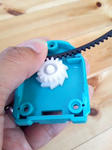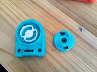 近所の子に、「もういらないから、あげる。」と、ライトランチャーの中古を2個貰う。 1個はベイを掛ける爪が折れ、もう片方は爪はあるがワインダーの引き出し部分がガタガタ。 折角なので、部品取りと自己修復が可能か、調べてみる。 ①.まずは、爪部分のネジはずし。 爪の中心のネジをドライバーではずす。 裏ね。 ②爪をはずすとこんな感じ。 これは簡単。 今後、爪が折れても爪部分だけ交換すればランチャーとしては使いまわし可能。 実際大会でもライトランチャーにベイランチャーの爪をつけている子がいた。 (他の子にいちゃもんつけられ、ランチャーを変えていたが・・・) ※公式大会での使用は控えた方が無難。タカラトミーに伝えると交換(!時間/費用はかかるかも)して貰えるようだ。 ③引き続き、内部分解。 3箇所のネジをはずすと・・・。 パコっとな。 想像以上に簡単な仕組み。 小さなバネと羽根、歯車のみ。 軽めのバネで歯車の逆回転を止めて~ こんな感じか。 実際のワインダーの抜き差し(シュート)は、この歯車で行う。 グリスをランチャーと歯車間に塗るだけで、部品消耗を防ぐのとベイの回転率へ貢献できる? まぁあったとしても微々たるものかしら。 歯車のベアリング化が一番? いやいや、それは改造違反だ。。。