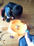 ちょっと寂しいことになってるhomaharu家のベイブレード情勢。 リビングの片隅に転がる、エクストリームスタジアムが更に哀愁漂わせています。 お!ベイしてるジャン♪ ・・・ppがテコ入れしました。 今回の起爆剤は・・・ コレ。 紫リブラD125D。 定番のジョイントですな。 正直、ウチのリブラはあまり強くない。 一度ベアリングで調べたけど、メタルウィールのバランスがひどい。 当然、回しても不安定。 そこで、センター出し頑張りマシタ。 方法は・・・5番煎じくらいなので、割愛。 ppも他の方のBLOGを参考にしたレベルだし。 なんとかデマシタ。センター。 homaのフレイムアクアリオ105Dも(ギリ)粉砕します。 触発されたか、 いそいそと。 3ヶ月くらいhomaの机の中に眠っていた、新品のメタルフェイスを開封し、 新しい改造に取り組むhoma。 ちょこっとスイッチが入ったか。 早く帰っておいで、homaちん。 □■ 番外編 ■□■□ 更に刺激を受けたのか、haruもベイを組みます。 ライトウィールだよ。ソレ。 homaがベイを切り上げても、まだベイを組み続けるharu。 ひょっとして?と思い、聞いてみた一言。 haruちゃん、ベイブレードの大会行く? 「ううん、行かない。」 うん、やっぱりね。