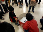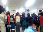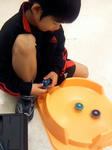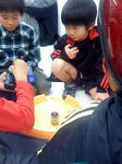 月1参加のベイブレード大会へ参加してきました。 恒例のイトーヨカドー、IYカップです。 12:45到着、受付。69番目でした。 受付は85名。当然の抽選。 ドキドキの抽選結果は・・・ 呼ばれず・・・。 呼ばれず・・・。 ハラハラ。 最後の2人目で、やっと呼ばれました! これでIY/アピタ通して、抽選は全て通過! なかなかのクジ運? さて、試合。 といきたいところが、呼ばれたのが最後から2番目なので、当然試合も最終戦。 ひたすら待ちマス。 今日はスタジアムを持参し、ppとバトルしていると・・・ いい暇つぶしデス。 スタジアムを持ってない知らない子達に取り囲まれ・・・ こうなりました。 名前も知らない子と、こんなに間単に打ち解けあう事ができるんだなあ。 と、ベイブレードにチョット感心? で、いよいよ試合。 今日は相棒の”フレイムアクアリオ”で参戦デス。 ★第一試合 ・ワイドスクエアスタジアム ・小学4年生の男の子?×年長さんくらいの女の子×homa 結果は・・・○ 僅かの差で持久勝ち。 ★第二試合 ・同い年くらいの男の子×同い年くらいの女の子だったかなぁ×homa 結果は・・・○ 男の子が痛恨のスタジアムアウト。後はしれっと持久勝ち。 ★第三試合 さあ、コレに勝てばBEST4。 ・相手は小学3年生くらいの男の子。アースアクイラ素組み。 結果は・・・・・・・・×。 残念。持久負けしました。 homaのフレイムアクアリオは、100トラック。 145トラックのアッパー攻撃には滅法弱く・・・、入賞にはまだまだだなぁと痛感。 今大会目標の”シュートミスをしない!”は見事達成。 ご褒美?のIY地下フードコーナーにて、メガポテトをご馳走します。 200円なら安い。 参加賞は、homaはいつものように袋の上から内容物を当て、 開封すらしません。 ppが開けてみると・・・ あぁ、コレダ。 あーあ、145トラック。 なんか早く負けるとDボトムがもらえて、勝ち進むと145トラックが出るのよね。 そんな分け方してないだろうけど。。。
