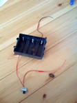 ちょっと敬遠してた動力部に戻ります。 電池BOXを100均で探してたのですが、なかなか良いモノが見つからず・・・ 先日解体したラジコンのパーツを流用することにしました。 ↓コレ。 色んな部位を剥ぎ取られ、チト無残。。。 (ホントは単1~2サイズを考えてたのですが・・・現時点では単3×5本。必要に応じて減らします。・・・ECO?いやいや。) 大事に使います。 電池BOXの他に、ON/OFFスイッチも流用します。 赤いコードの先の白い部分デス。 電池BOX~モーターの中間に、そのままこのスイッチ部をかますだけで、 ON/OFFが可能デス。こいつは楽チン。 設置スペースも限られているので、余分な部分はノコで切断します。 だいぶシンプルになりました。 底面に電池BOXを仮置き。 (縦置きはちょっと不安定でした。) うーん窮屈。 電源スイッチを外側側面に設置します。 可動部なので、しっかりネジ止め。 モーターの動作確認もOK。 動力供給はこれで完成デス。 さー、あとは動力部最終章”モーター設置”と最大の山場となるであろう”回転部調整”を残すのみ。 あー動くのかなあ・・・。