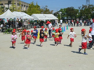 先週に引き続き、haruの運動会デシタ。 mmはPTAの運動会進行のお仕事があったので、ppとhomaで送迎&応援。 隣接のhomaの小学校にて開催。 皆で入場。 haruちんは年少なので、初の運動会。 踊りとかけっこ。頑張りマシタ。 閉会式にて、頑張ったご褒美に年少さんはボールを貰います。 皆、笑顔。 このボールは暫くハナサナカッタ。 その後、保護者でテントや椅子などの片付け。 運動会よりもコッチの方が疲れたなあ。