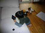 奥の白いのは、構われたがりのcoco。DSの音と映像が好き。