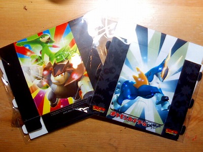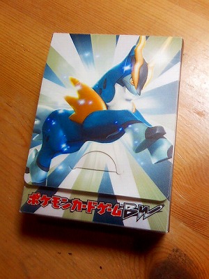 いつぞやに申し込んだ・・・ こんな懸賞もありました。 抽選で1000組2000名にコバルオン等のプロモカードがあたるのですが、 それはハズレた模様。 全員プレゼントのデッキケースが届きました。 2種ではなく、表裏。 組み立てると・・・ こんな感じ。ハーフデッキ(30枚)を収納するのに丁度よいのかな。 しかし、懸賞ってなんでこんなに当たらないのかなぁ。