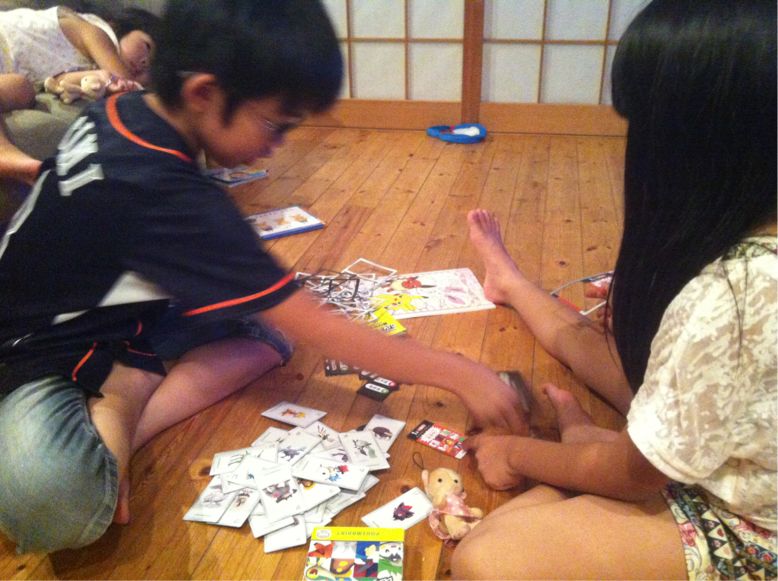 ポケモンの描かれた札を並べ、問題札の答えに従い、札を集める。
