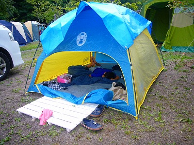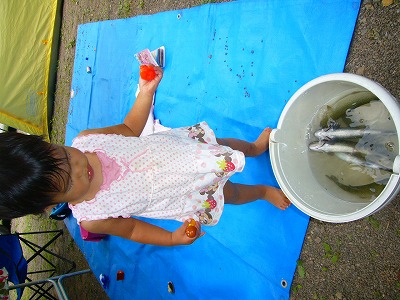 8/15~17と、豊根オートキャンプ場でキャンプしてました。 今度は僕の妹家族+父親とのキャンプです。 今夏2回目のキャンプ。 またもや奥三河。道をだいぶ覚えましたね。。。 さすがにお盆。 サイトは全部埋まってます。 管理人さんの親切さが感じられる気持ちのイイ、キャンプ場です。 川遊びもできマス。 今回は川の真横のサイトでした。 終始酔っ払ってたので・・・ キャンプサイトの写真は無し。 子供の遊び用テントくらいしか写真がない。 2日目の朝、皆が起きても起きてこないボウズの寝姿つき。 今回も2~3度雨に降られましたが、タイミングは良く、サッサとタープやテント内に荷物を避け、難は逃れました。 山の天気はかわりやすい。を肌で実感。 2日目には管理棟横の釣堀に挑戦。 5尾2100円。(追加300円/1尾) 釣り好きhoma平の挑戦。 餌は練り餌。よく取られるので、早めの合わせが必要。 なかなか子供達には合わせれません。 なので、一回お手本をみせて・・・ 一緒に竿を持ってあわせて釣りマシタ。 あぁぁ、haruちん可愛いぃ。 おっと、haruちんニジマスGETデス。 甥っ子にも釣らせましたが、homaは未だに坊主。 それでもhomaは自力で挑戦し続けます。 そして見事にGETナリ。 これぐらい釣り難いほうが楽しいかも♪ cocoにも釣った魚を見せてみました。 「う”-」だって。 その②へ。。。