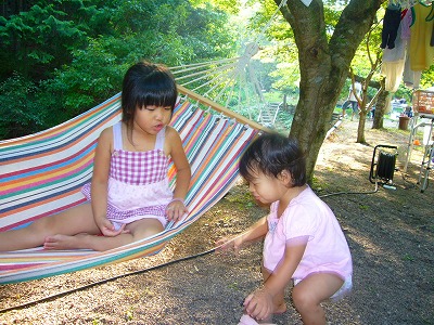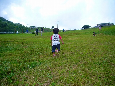 今回は妹夫婦/親父殿と一緒なので、だいぶ楽チンなキャンプでした。 男手(力持ち)がいると、ほんと助かりマス。 テントの設営/撤収も全然苦じゃなかったです。 (自分が寝てたダケ・・・?) 今回もハンモックを設置。haruちんはやっぱりハンモック好き。 cocoもダイスキなお姉ちゃんに寄ってきます。 1歳児の存在が一番懸念してましたが、特に問題もなく、 元気に自然と触れ合ってました。 お兄ちゃんお姉ちゃんが一緒なら、どこでも行けそうデス。 キャンプ撤収後、茶臼山へいきました。 高原を見るや、親の許可なんて必要なしと、一心不乱に走りだしマス。 画的には転げ落ちる図が望ましいかな。。。なんて。 勿論、我が家の”自由人”cocoも駆け回ります。 初2泊3日のキャンプ。 キャンプを楽しみにし、実際にキャンプを楽しんでくれた子供達を見て、 来年も行くぞ!と決意させてもらいました。。。