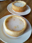正月は・・・餅? いやいやパンですな。 スープカップブレッド! 年末の買出しで行ったスーパーで発見。 オモシロそうなので購入。 何かと言うと・・・ パンのお皿ナノダ。 子供達の好きなコンポタを入れてみる。 皿まで喰う。 1ケ100円ナリ。
