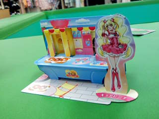 最近、homaばっかりオモチャを買い与えているので・・・ たまには、haruにガチャガチャをやらせてあげる。 なにがいい?と聞くやいなや、 「コレ!」 やっぱりプリキュア。 あれ、200円?高いけど・・・まあね。 ウレシイ? ・・・。 これで200円?ペラペラじゃん・・・。 ピーチとドーナツ屋 うーん。やっぱり男の子のオモチャの方が面白いなあ。