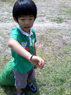 今日は子供会の公園掃除。 朝8:30から頑張って、落ち葉やゴミ拾い。 そんななか、homaが手や顔に乗せ可愛がっているのは・・・ ・・・ミミズ。 全然気持ち悪いとか、怖いとかいう認識がないようだ。 子供ってこんなもんかあ。 ppはミミズも触りたくないです。 釣りエサのゴカイは頑張って触ります・・・。