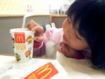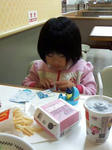 homaとmmがサッカーの試合に行ってるので、 居残り組みのharuちんとppはデート♪ 車を持ってかれたので、自転車で近所のピアゴへ。 まぁ、デートというのか・・・昼ごはんを食べにマックへキマシタ。 ppは隣のスガキヤだけど。 定番、ハッピーセットを注文。 おまけは、最近haruちんが気なってる”たまごっち” ジュースのコップにも”たまごっち” 土日のおまけとして、DVDも貰えました。 毎週のように様変わりするオモチャ達。マックってスゴイよね。。。