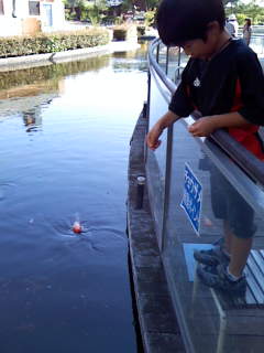 PA隣接の公園へちょこっと顔を出す。 レストラン横の水路に”チョウザメ観察ポイント”発見。 落ちてたコイのエサっぽいものをまくと・・・ ぱらぱら。 うじゃーん。 コイとナマズが寄ってきた。 あれれ、チョウザメは? 1匹ちらっと見えたくらいで、コイ達の影にひっそり隠れる感じ・・・。 なんかイベントやってた。 ゆるキャラ大集合・・・。 ウナカッパとか。上のキャラは誰だろう。。。 PAトイレ前には、くぐれる木のオブジェが。 奈良の東大寺か・・・ 30分足らずの寄り道だったので、ちょいと遊び足らないかな?