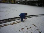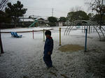 先月積雪の予報も、全く雪が降らない愛知県。 今回もパラつく程度と思いきや、 朝、窓から外を覗いてビックリ!積もりました! 久々!!2年ぶり? 寝ているhomaに声を掛けると、30分のシェイクダウン後・・・ ★AM7:30 誰もいない公園へ! まだ誰の足跡もなし。 積雪と言っても1~2cm。踏めば雪が剥がれ、下の芝や土が見える感じ。 でも!愛知(三河)ではコレも珍しいノダ。 軽く雪合戦後、ppにぶつける大玉を作り始め~ 延々と転がします。 結局、それが雪だるまになりました。 公園から~玄関に設置。 ★AM8:20 再度公園へ。 ・・・吹雪いています。 さっきの僕等の足跡がなくなるくらい降ってます。 相変わらず、人の気配はなし。 貸切状態で、遊び倒しマス。 ★AM8:50 またまた公園へ。 朝飯を食べに一度家に戻っていたら、近所の子達が呼びに来マシタ。 壮絶な雪合戦が始まります。 こういう時、必ずppが高学年の集中砲火を浴びマス。 無論、やっつけマス。容赦しません。 あれ、そういえばharu姫は? いました。 「寒いから行かな~い。」 おいでよ。。。楽しいのに。 AM9:30には陽が差し、雪もスッカリ溶けました。 いやー、ほんと今日会社休みでヨカッタ♪