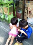 ppが子供の頃から通ってる駄菓子屋さん。 未だに元気にお店を開いてる♪ 親子2代でお世話になります。 カゴ持って店内を物色。 homaは最近、当たり付きのお菓子が好き。 そんなhomaには実にもってこいのお店。 店先で喰らう。 そのうちhomaの奇声。 「よっしゃ!あたった~!」 10円ガムで当たりをGET~! いつまでも頑張って欲しいお店。。。