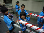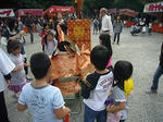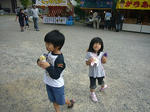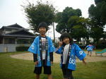 今日は野田八幡宮のお祭り。 子供会で子供みこしがありました。 兄妹でハッピ姿♪ 町内を練り歩きマス。 ワッショイ! homaは友達のコウちゃんと太鼓も経験。 勇ましいねぇ。 jjとhjj、hbb・・・おじいちゃん、ひいおじいちゃん、ひいおばあちゃん、それぞれからお小遣いを徴収し、午後にはお宮さんへ出掛けます。 今回はスポンサーが多いので、好きなものをほぼ制限なしで選ばせマス。 クレープで腹ごしらえ。 恒例の千本引きは、またBB弾のGUN。 haruちんはキュアサンシャインのお面だったり。 境内にナニやら人だかり。 ナニナニ? あ、天狗だ。 そういえば去年もいたっけ。 餅投げには参加せず、早々に帰宅。 お祭りは楽しい♪