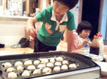 今日の晩御飯は・・・ たこ焼き! ppのリクエスト♪ 自分で焼くはめになるのだが。。。 最近タコも高いので、具に子供も好きなウインナーを用意する。 何かしらの”当たり”を作ると、子供にバカうけ。 今回はジャガイモ。 市販のお好み焼き粉を使用し、ネタを仕込む。 お好み焼きより、ちょい水多目。 ホットプレートのたこ焼き皿でひたすら焼く。 120個程度焼いたが、ほぼ完食。 HOMAはパリパリを物色中。 初夏の鉄板。 暑いがウマイのだ。