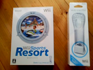 実は8/23はppの誕生日♪ まだまだ30代前半デス。 そんな34歳の誕生日プレゼントに家族から貰ったのが、コレダ!! Wii リゾート! キャー! 欲しかったのヨ!コレ!! 不況の中、家計も苦しいので、ppのプレゼントも無しかな。とも思ってたケド・・・ mmが買ってくれマシタ! アリガトォ♪ 食事~風呂後に、早速「やるぜぇ。」 (ここ最近のharu(女の子・・・)のスゴむ口調風に。身内ネタ。) モーションキャプチャーをWiiリモコンに装着し、準備します。 充電池取って!TVのリモコン持ってきて! kodomo達のお手伝いの動きも、普段と違いマスね。(Wiiリゾート効果) 開始後、まず空から落ちます。 よぉーし。「やるぜぇ。」 ・・・。 ハイ。取られました。 父の日のハンモックと同じか・・・。 homaharu達が占拠。 いいのヨ♪君等の楽しそうな姿を見るのがナニヨリ嬉いの。 飽きてきたharuに代わり、なんとかppも割り込む。 写真はアーチェリー。 ゴルフとアーチェリーとバスケットボールをやりました。 オモシロ♪ モーションキャプチャーによる操作性の向上は、特筆スベキトコロ! スゲー。さすが任天堂。 皆、ありがとうネ。