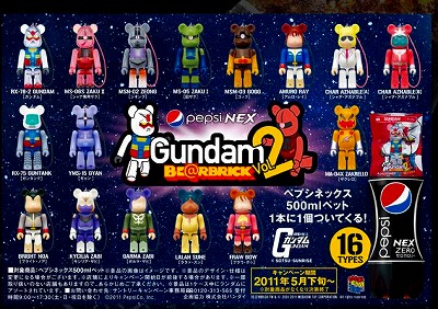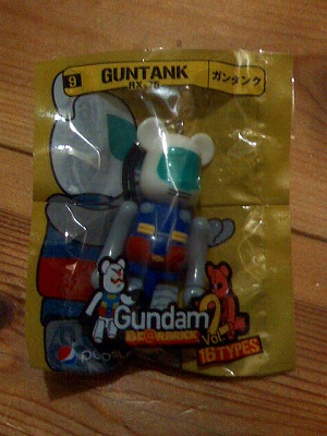 コンビニなどで、PEPSINEXにおまけでガンダムがついてきてマス。 RBRICKとかいう、クマとガンダムのコラボ。 第二弾デス。 第一弾では、シャアザクを購入。 (ホントはドムが欲しかったけど、homaが選んでくれたので・・・) 今回は・・・ うーん。悩むなぁ。 大人買いまでする気はないので、一個を選ぶとすると・・・ ブライト?ガルマ?・・・ザクレロ、うーん。 ガンタンクに決定。 ジオングも欲しい。