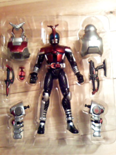 仮面ライダー好きはhomaだけではない。 元より、その世代であったppは”スーパー1”や”Black”に大ハマリ。 平成に入っても、子供をダシにハマった仮面ライダーがアり。 それは・・・ 仮面ライダーカブト。 今や大ウレの水嶋ヒロが主演。 とにかく立ち振る舞いがカッコイイ。 惚れた結果がコレ。 なんだね。コレは!? 実はコレ・・・ 仮面ライダーのフィギュアというか・・・ ライダー版、超合金? 中身はと言うと・・・ こんな感じ。 カブトと言えば・・・キャストオフによる変形?が売り。 しっかり、そのキャストオフもします。 ⇒ 更には、別売りのバイクにも乗ります。 エクステンダー。 造形もスバラシイ一品。コレで1体900円くらいだったかなぁ。 買いに買った・・・9箱。一部欠けてるので、未コンプ。 大事にしまってあったのを、homa達が引っ張りだしてきたので久々に開けました。 やっぱりカッコイイなぁ。