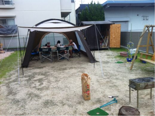 8/14はBBQ今年はキャンプ場を予約していないので、庭でやりマス。朝からの大雨で、無理かなぁーと思ってましたが、夕方には落ち着いたので、強行デス。今年購入したおNEWのタープ。うーん。食い飲み過ぎで、腹が痛い。