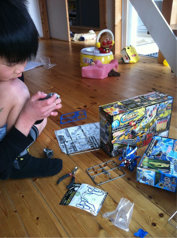 2月8日は、homaちんの誕生日。 お寿司とチーズケーキでお祝いデス。 haruちんも手書きのバースデーカードでお祝いしてくれました。 4月からは4年生。 部活が始まったり、妹(haru)の進学で一緒の通学になったり。 一層の成長が見られそう。 さて、気になる誕生日プレゼントは、 ブレイクボンバー。 ・・・。 ビーダマンの対戦ステージデス。 WHFでの対戦で味を占めマシタ。 多少、僕も購入を仕向けた感はありますが、誕生日直前の発売ということもあり、 まぁ丁度よいプレゼントかな。と。。。