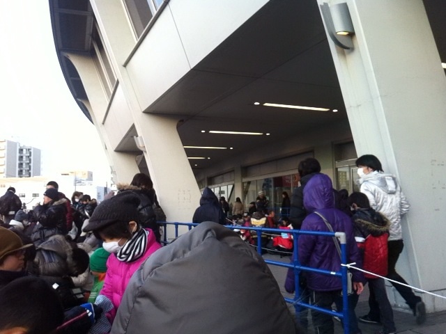 6:25頃。名古屋ドーム着。去年のような降雪や風もなく、穏やかな感じ。スペシャルグッズの最後尾を目指しマス。遠い。遥かに遠い。微妙にドームの屋根の下には入れず。6:30の最後尾はピアゴ前。去年と同じくらいなのかしら。homaはイナズマ⚡中。素手で寒くないのかなぁ。