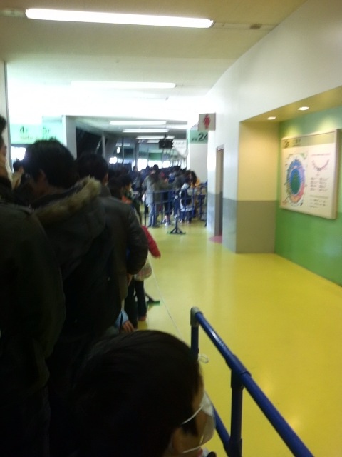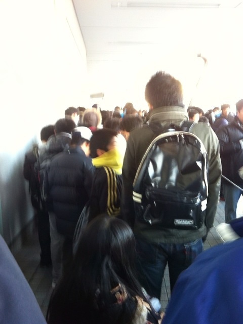 7:30 列がチョコチョコ動き始め、現在ドーム壁折り返し地点を経由。早く中に入りたい。。。