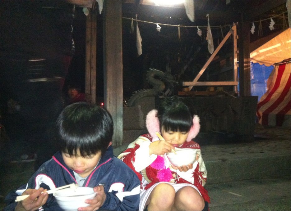 大晦日。カウントダウンの為に、子供達も遅くまで頑張って起きてマス。homaは例年通りですが、haruちんは初参戦。肝心のカウントダウンは、DSで。どうぶつの森でカウントダウンできるらしい。TVでカウントダウンもいいけど、コレも面白いかなと。10分前からカウントダウンしてます。ニッコニコ。カウントダウン後は、近くの野田神社へ。刈谷に住み始めて5年目にして、初の初詣。詣客がもの凄い列。列を素通りして、おしるこを貰いました。露店も出てた。