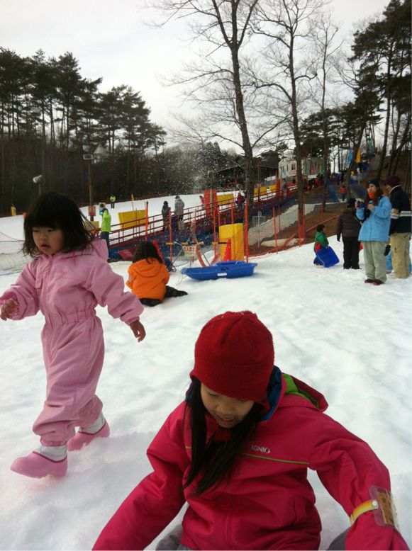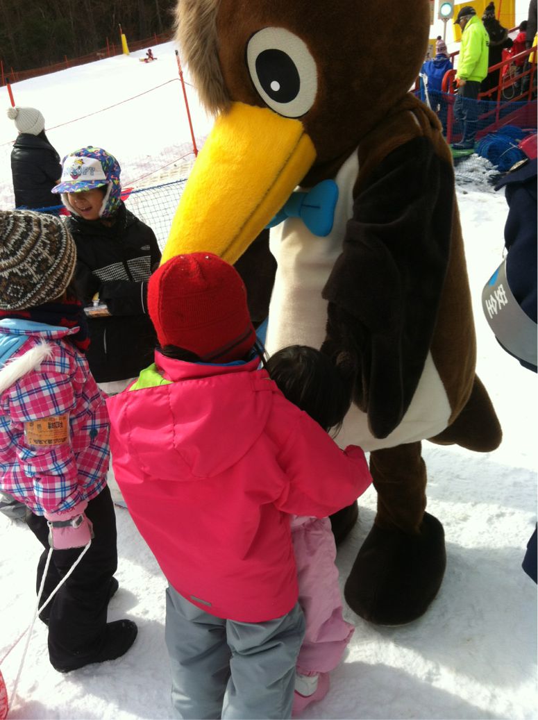 冬休みも残り一日。宿題も終わらせ、朝から向った先は、旭高原元気村!人工降雪で、冬季期間中は雪ソリと雪遊びが楽しめマス。homaはノンストップで黙々と滑り続け。harucocoは雪遊びに熱中。cocoも雪が好き。でも手袋と帽子は嫌い。なんとか「かまくらもどき」を作製。裏には窓も。(壁が崩れただけ。。。)売店にて、homaの大好物「五平餅」おでん(3品100円。お新香つき!)などで昼食。売り子のおばあちゃん達が優しく、会話が楽しい♪なんか変なのもイタ。警察の着ぐるみらしい。冬休み最後のいい思い出になれたかな。